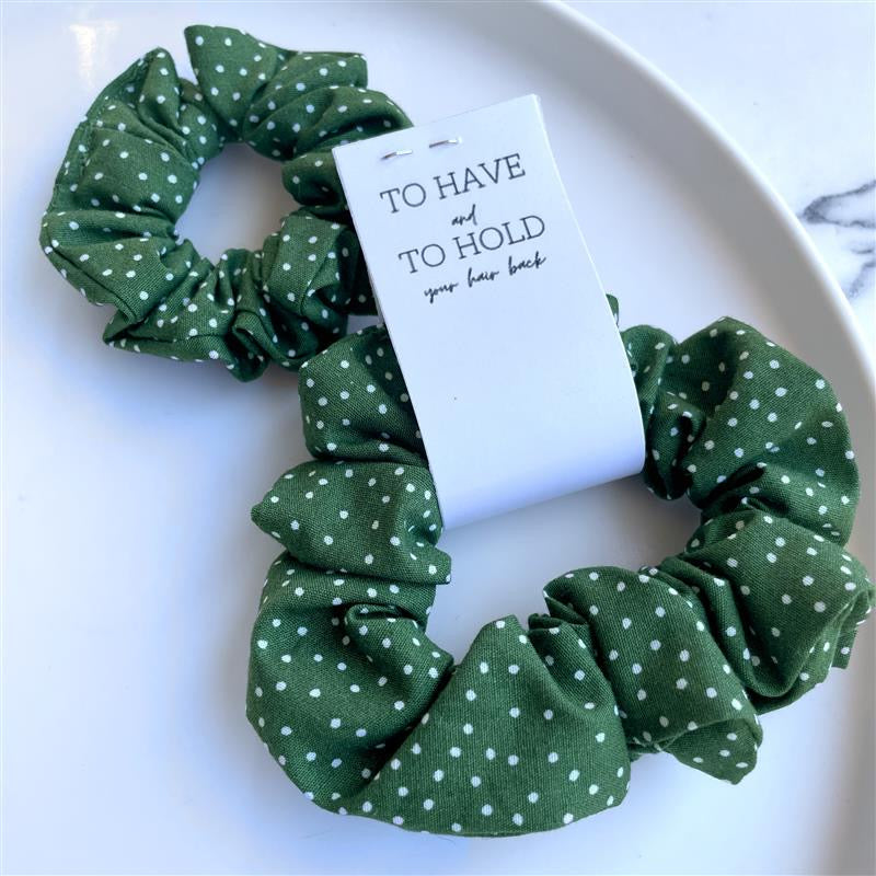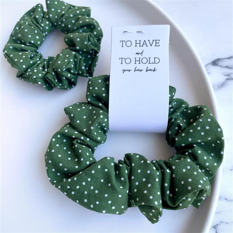 Green polkadot scrunchie