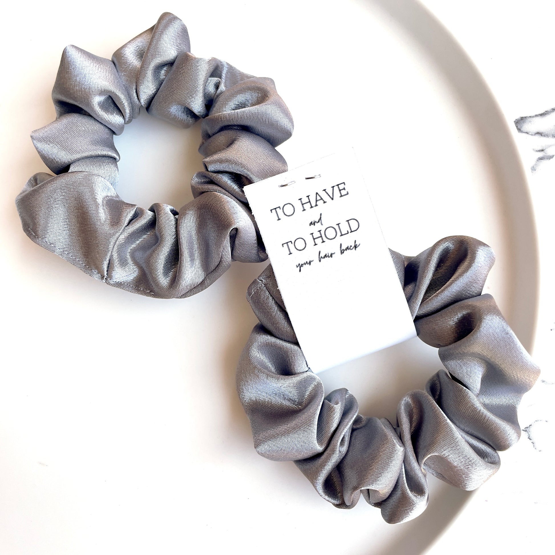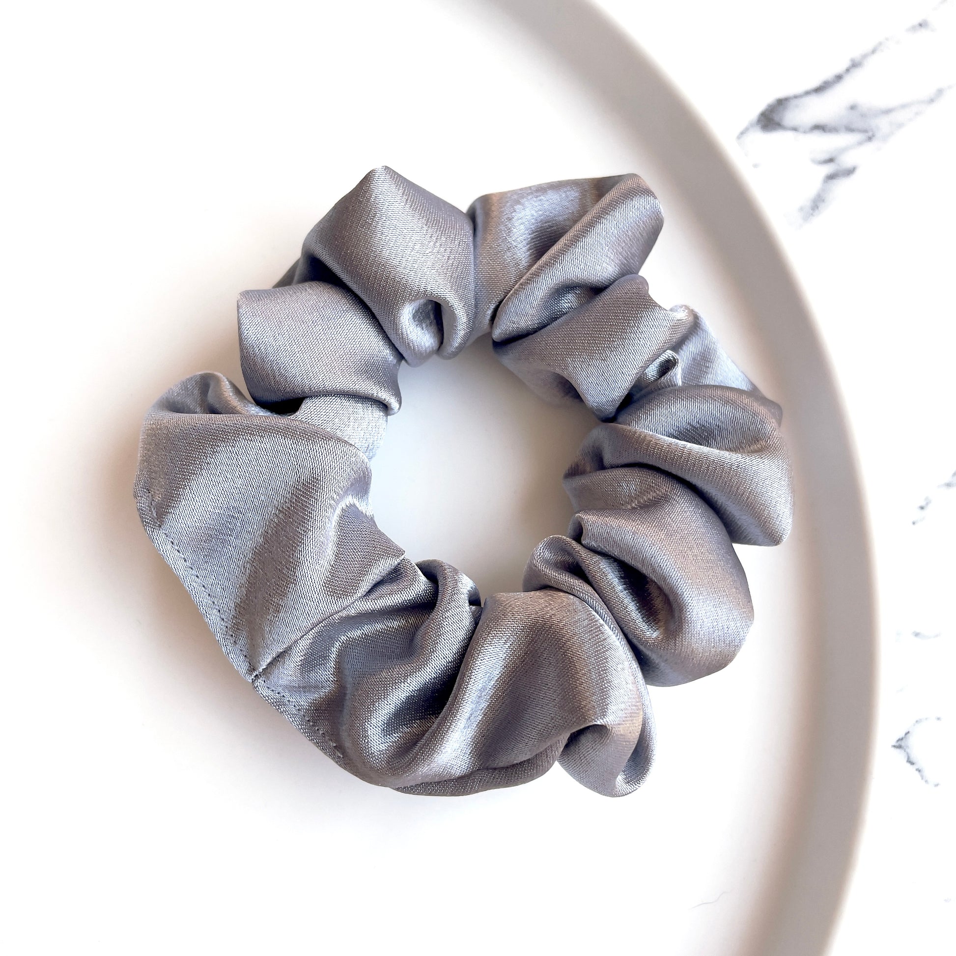 Grey satin scrunchie