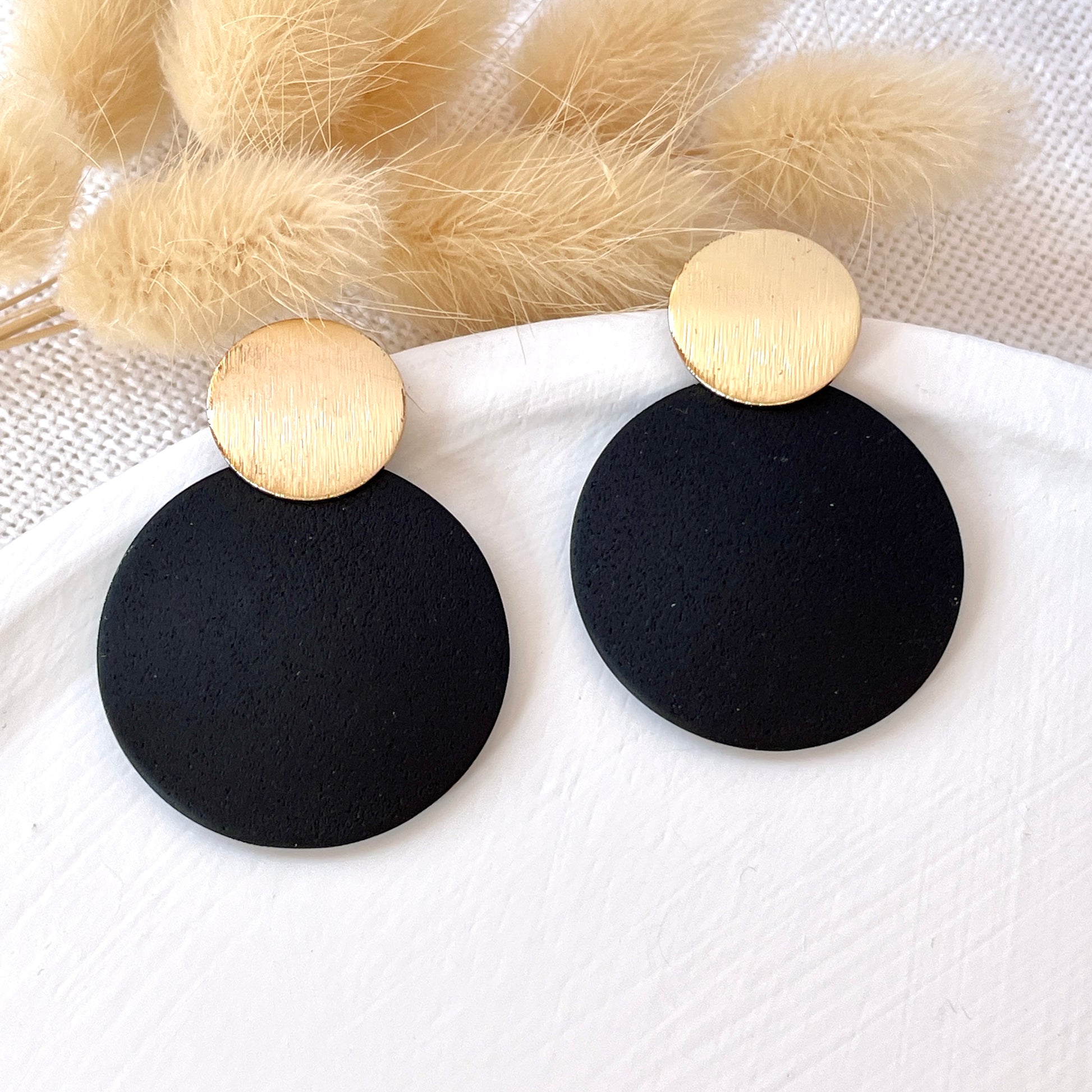 Round statement earrings with stainless steel studs.