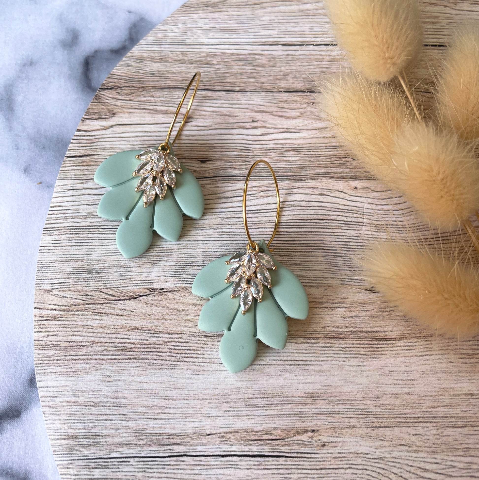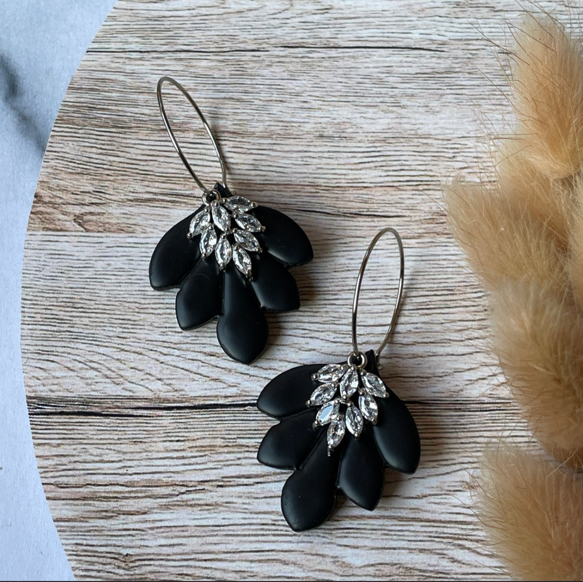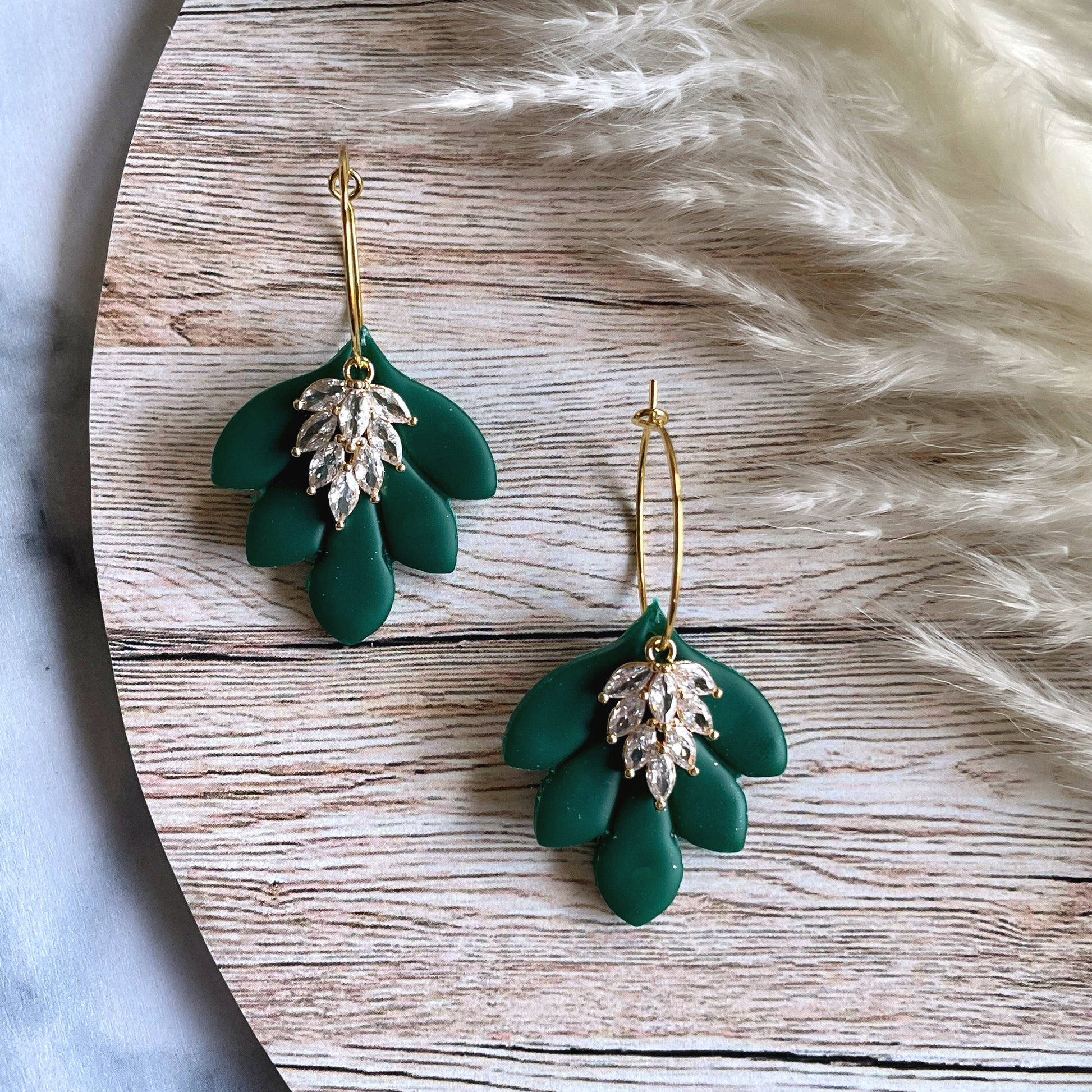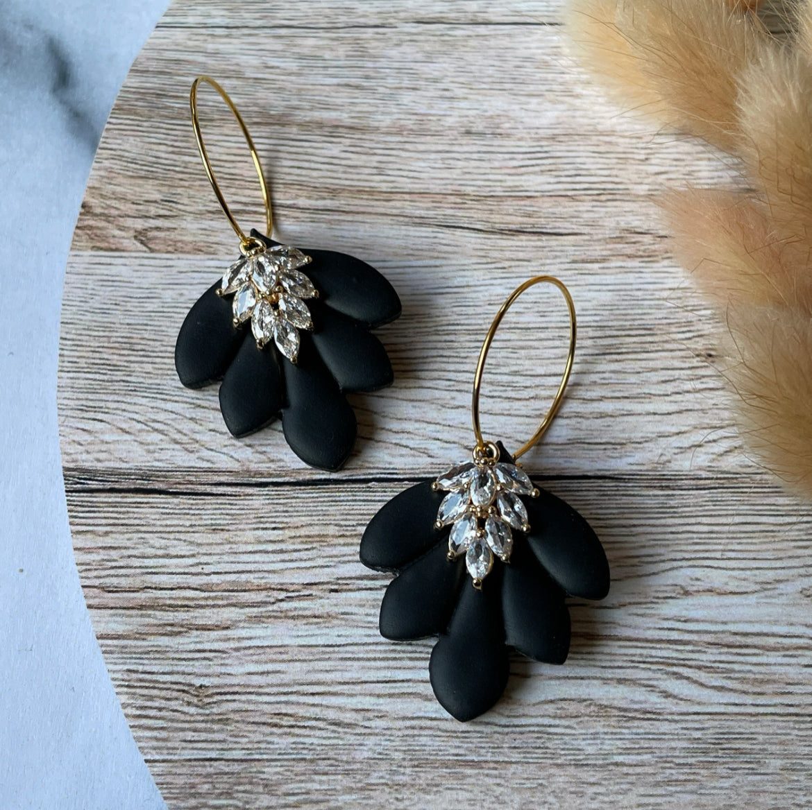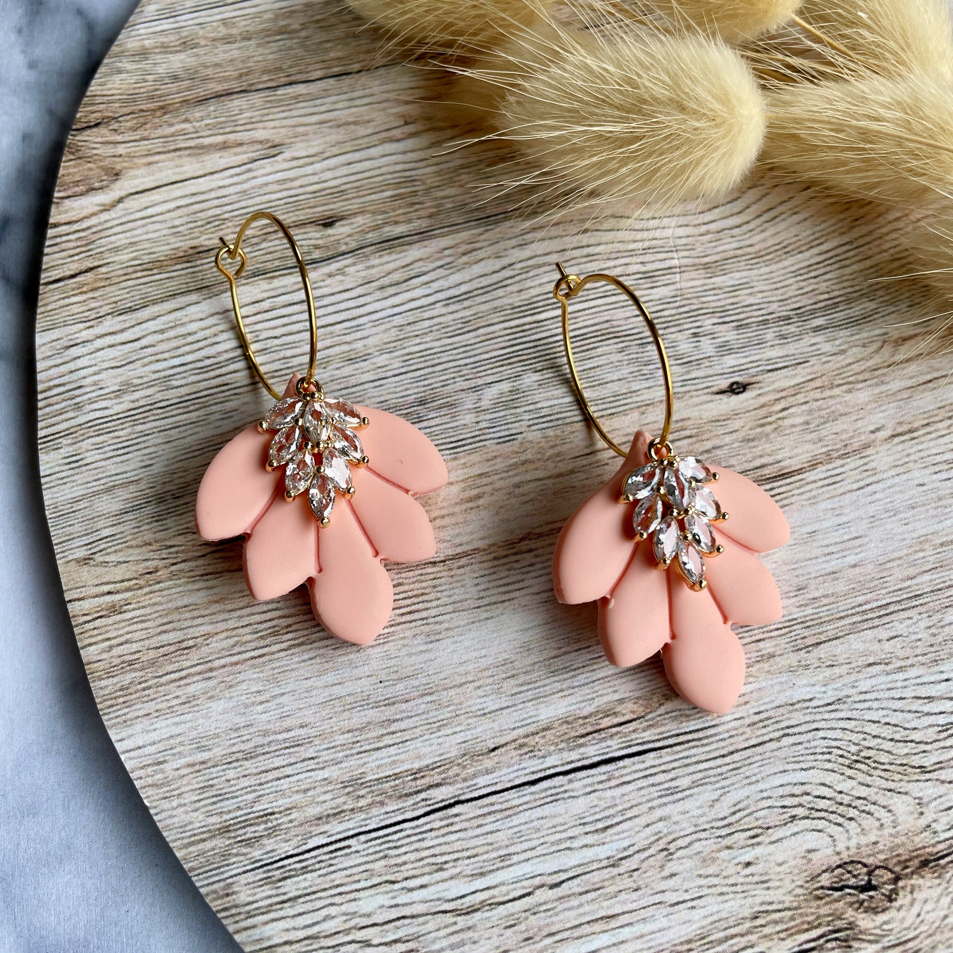 Flower statement polymer clay earrings on a hoop with cubic zirconia pendant