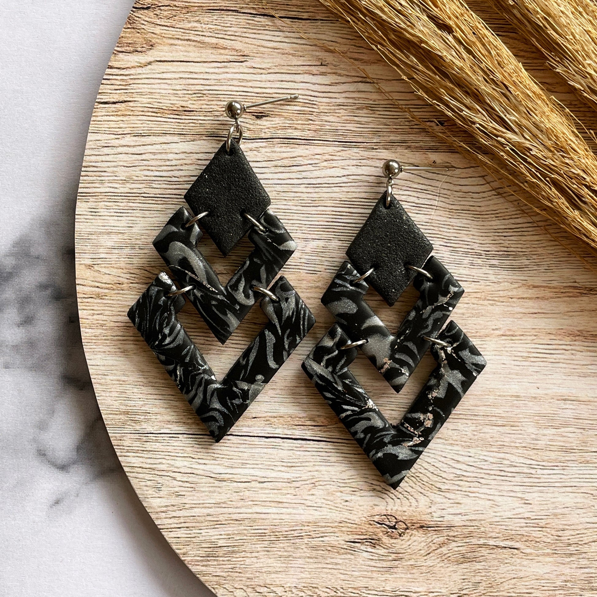 This is the larger of the two earrings of the same style, which can be seen from the photos. Including the stud, total length is 7.2 cm.