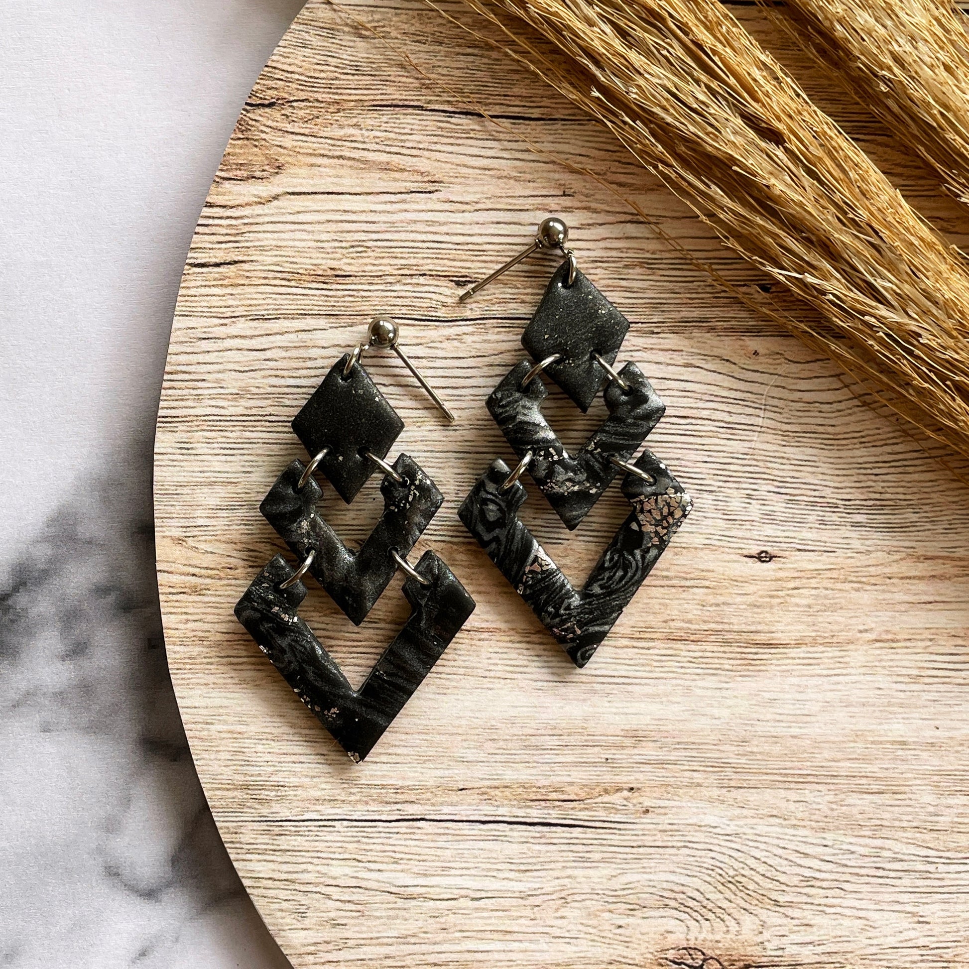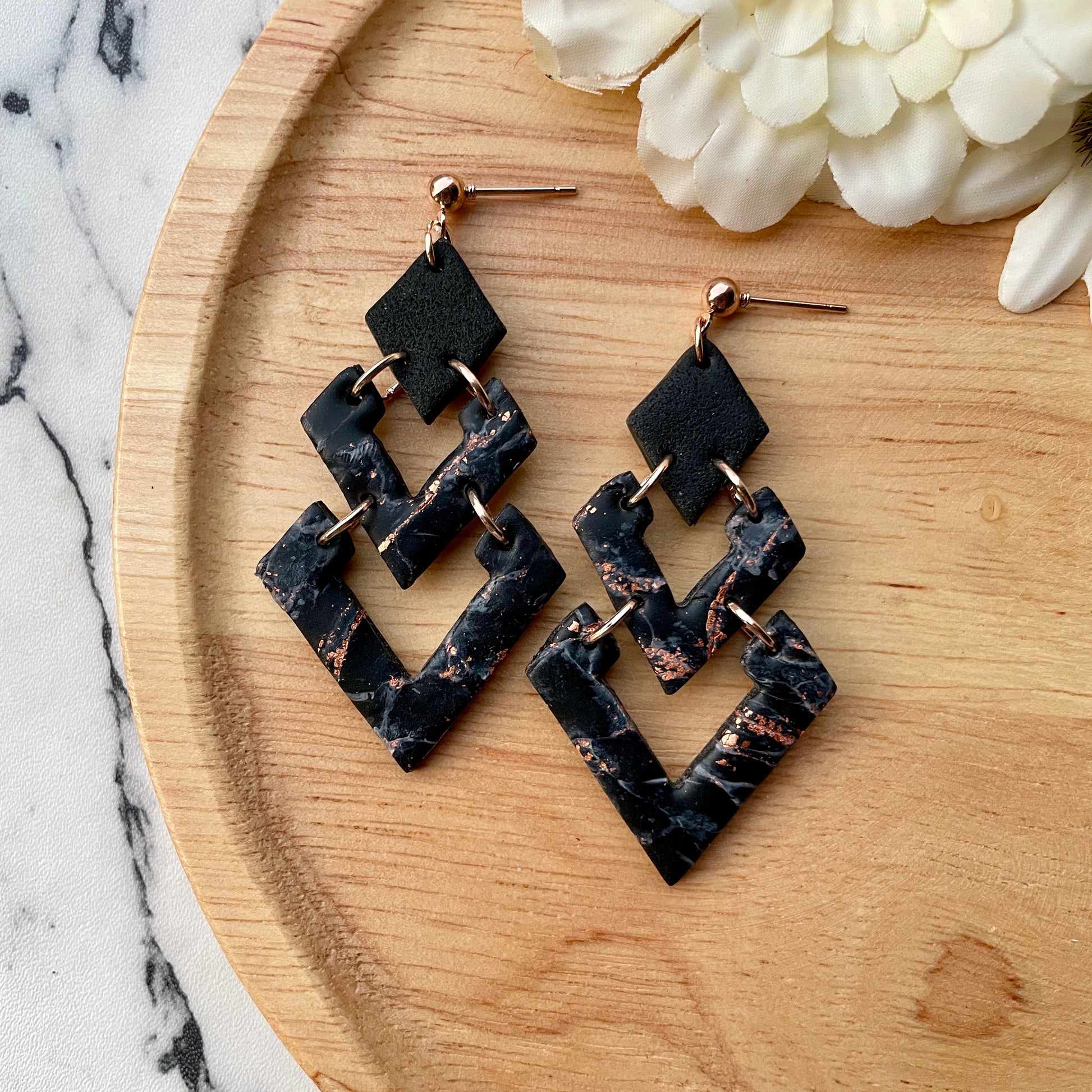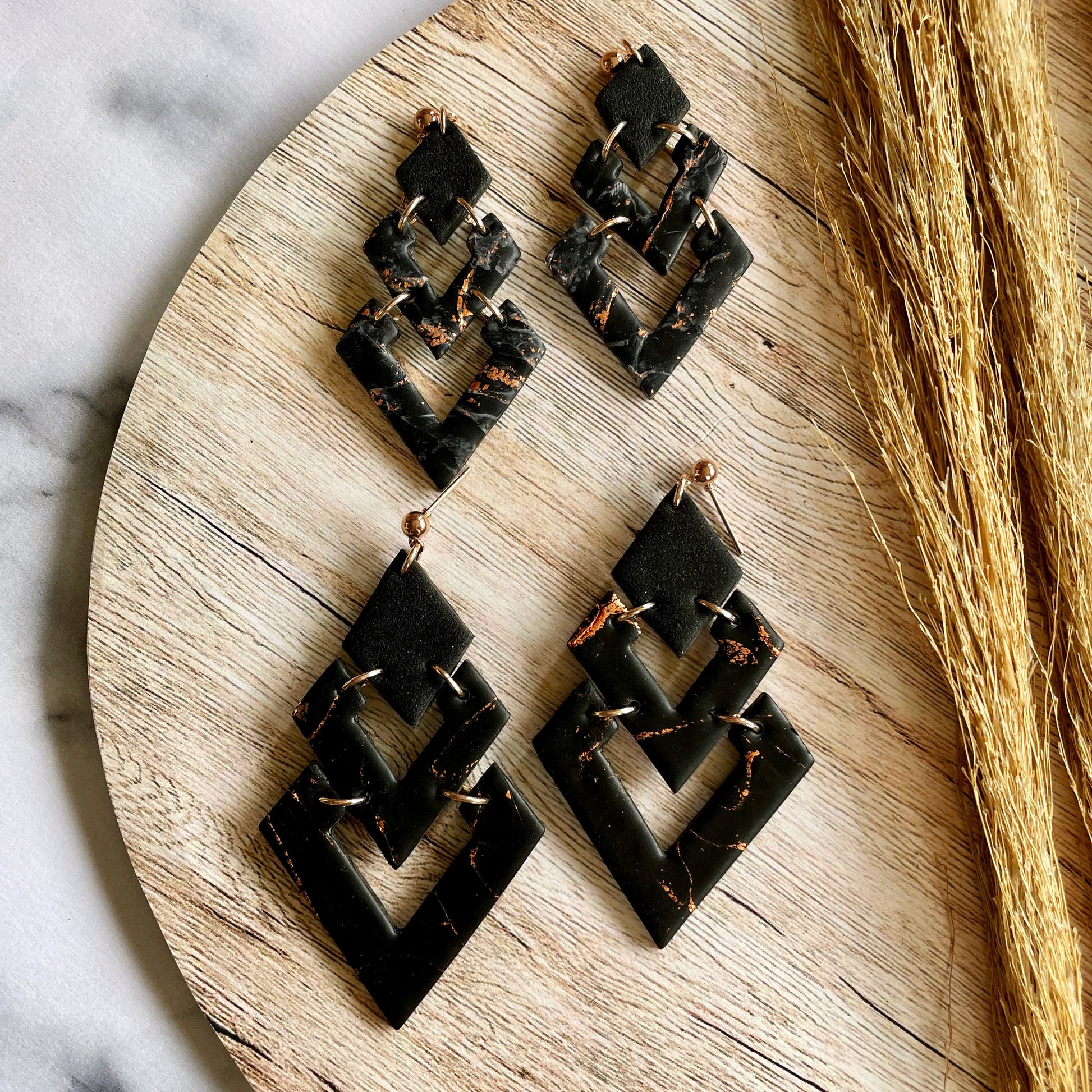 This is the smaller of the two earrings of the same style, which can be seen from the photos. Including the stud, total length is 6cm.