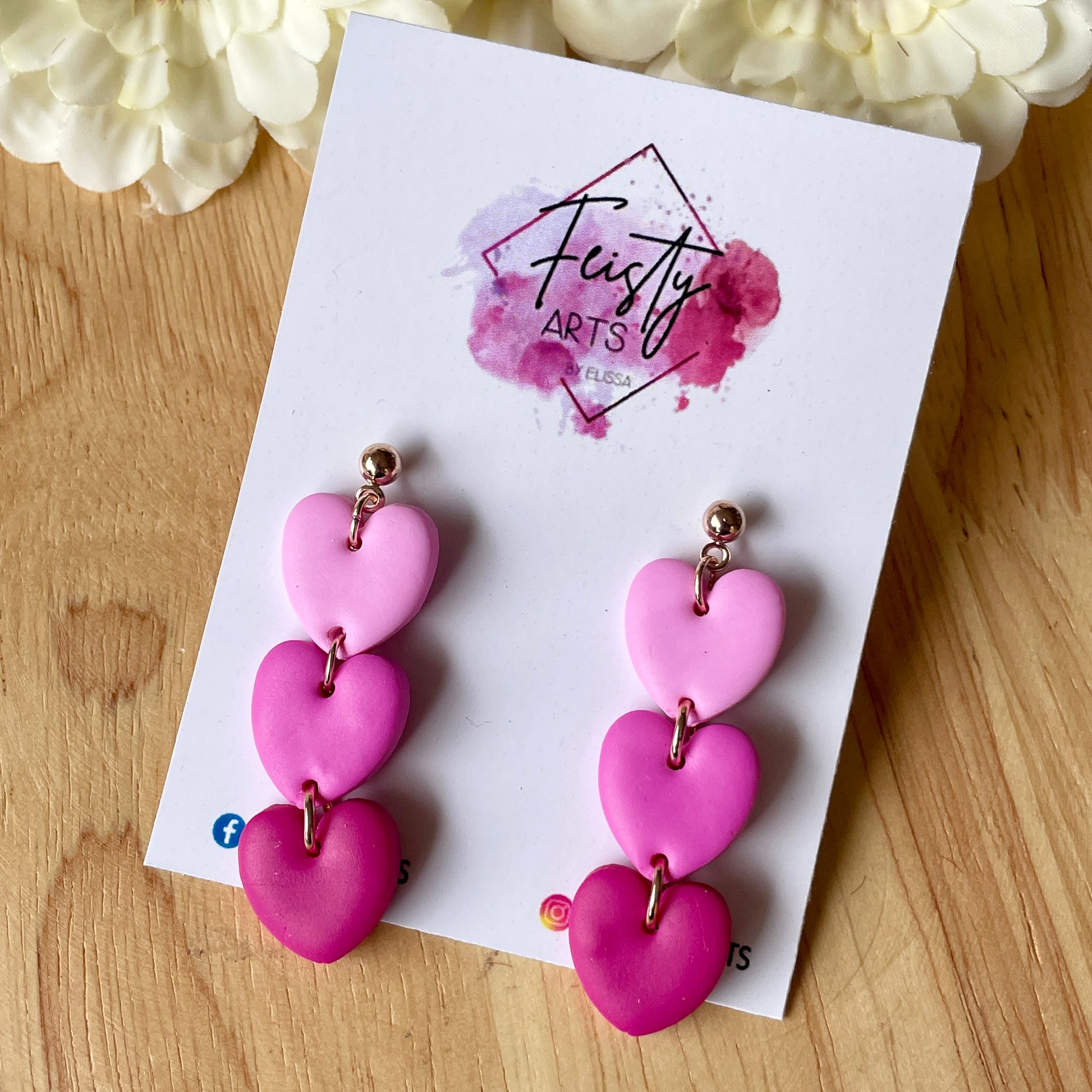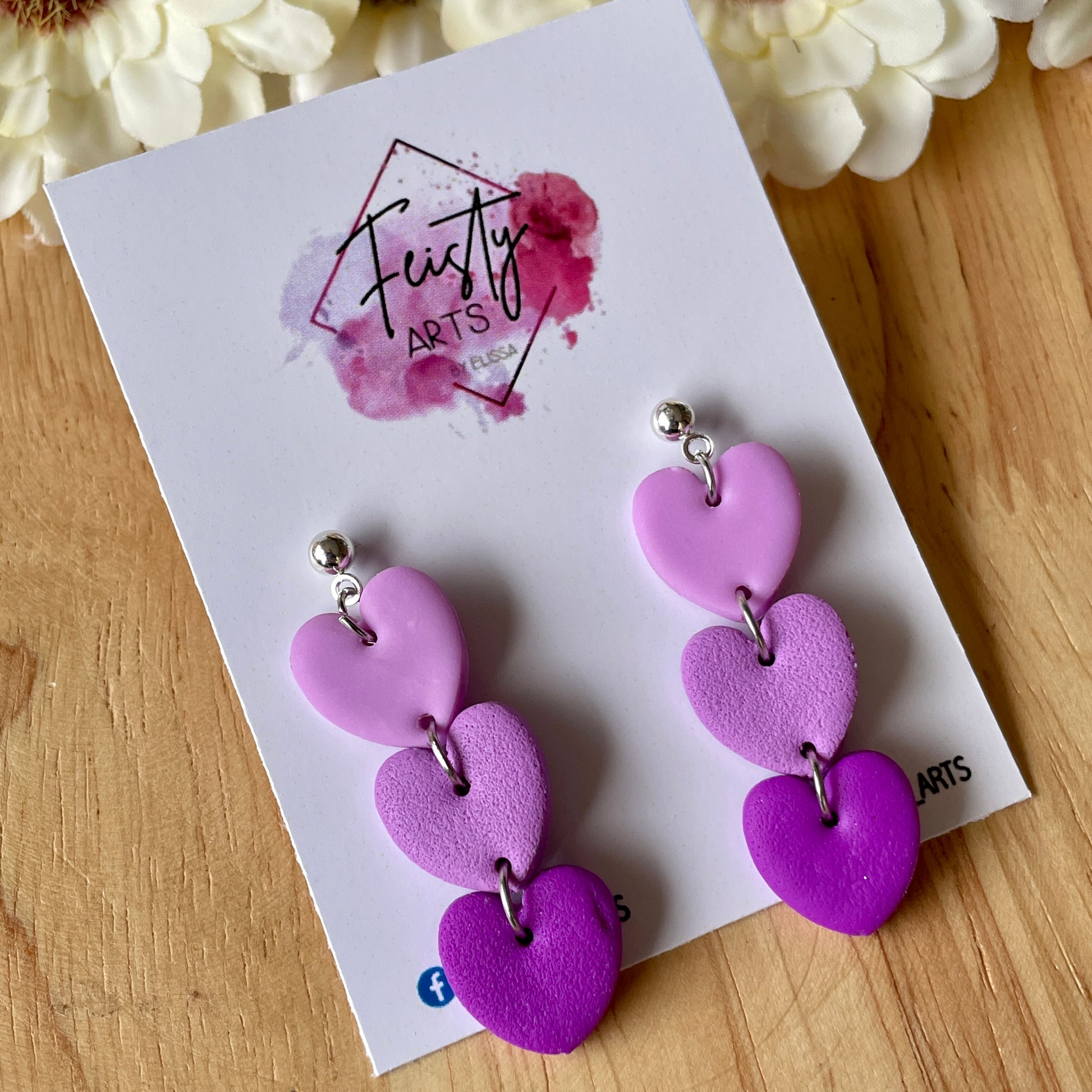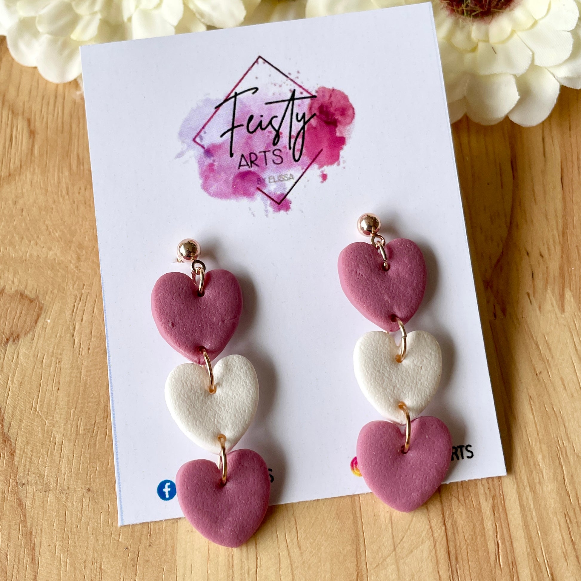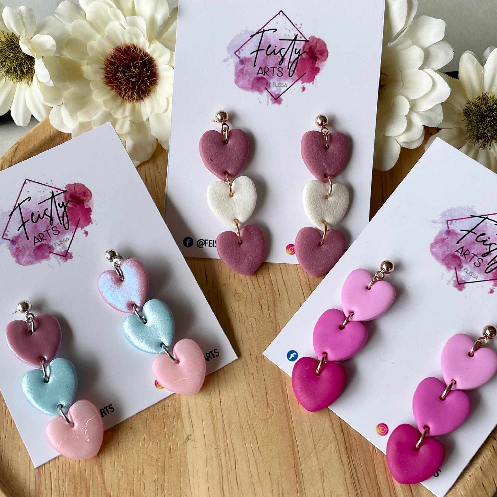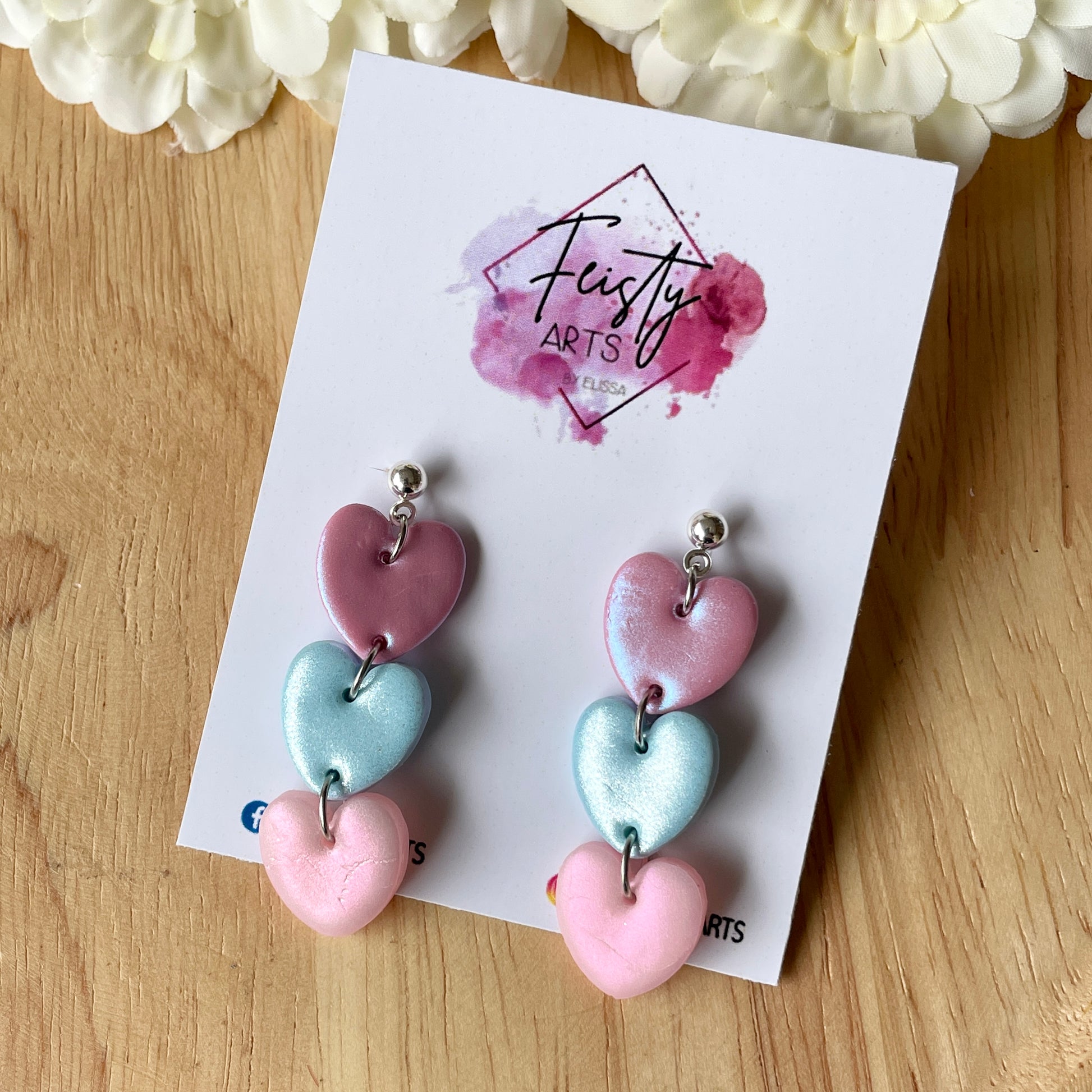Dangle hearts polymer clay earrings with stainless steel ball studs
