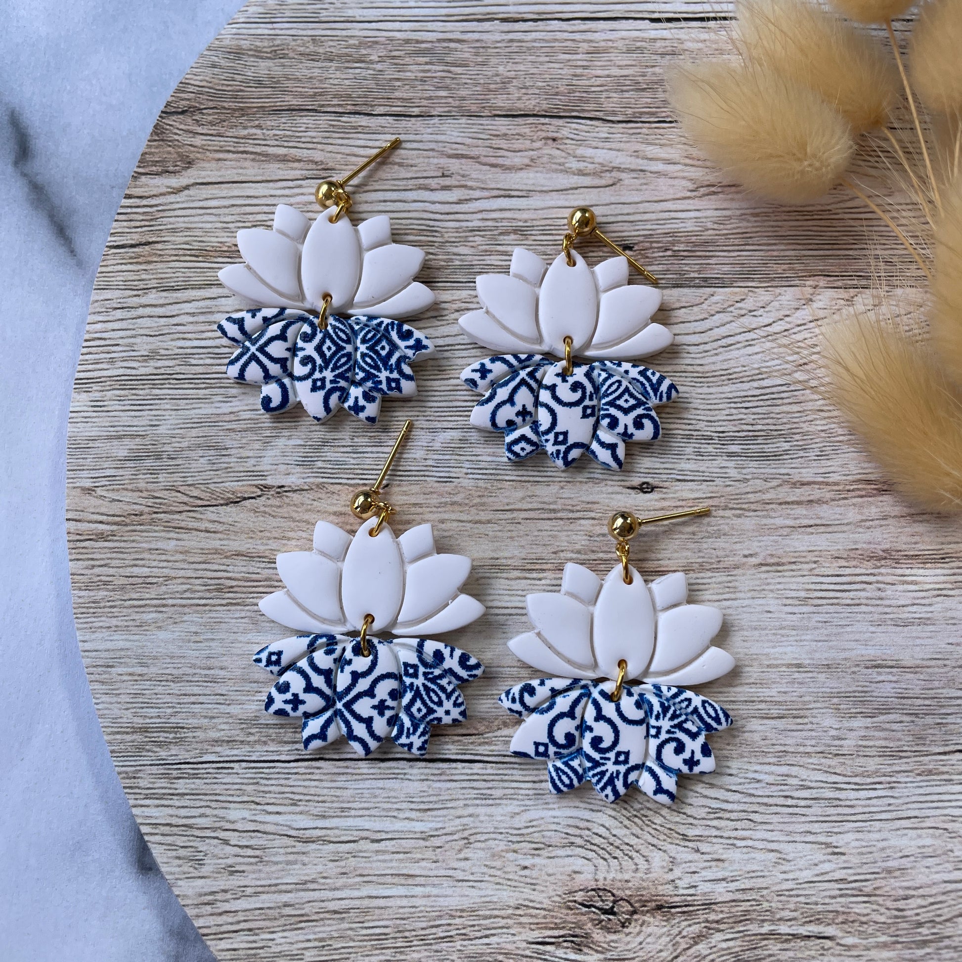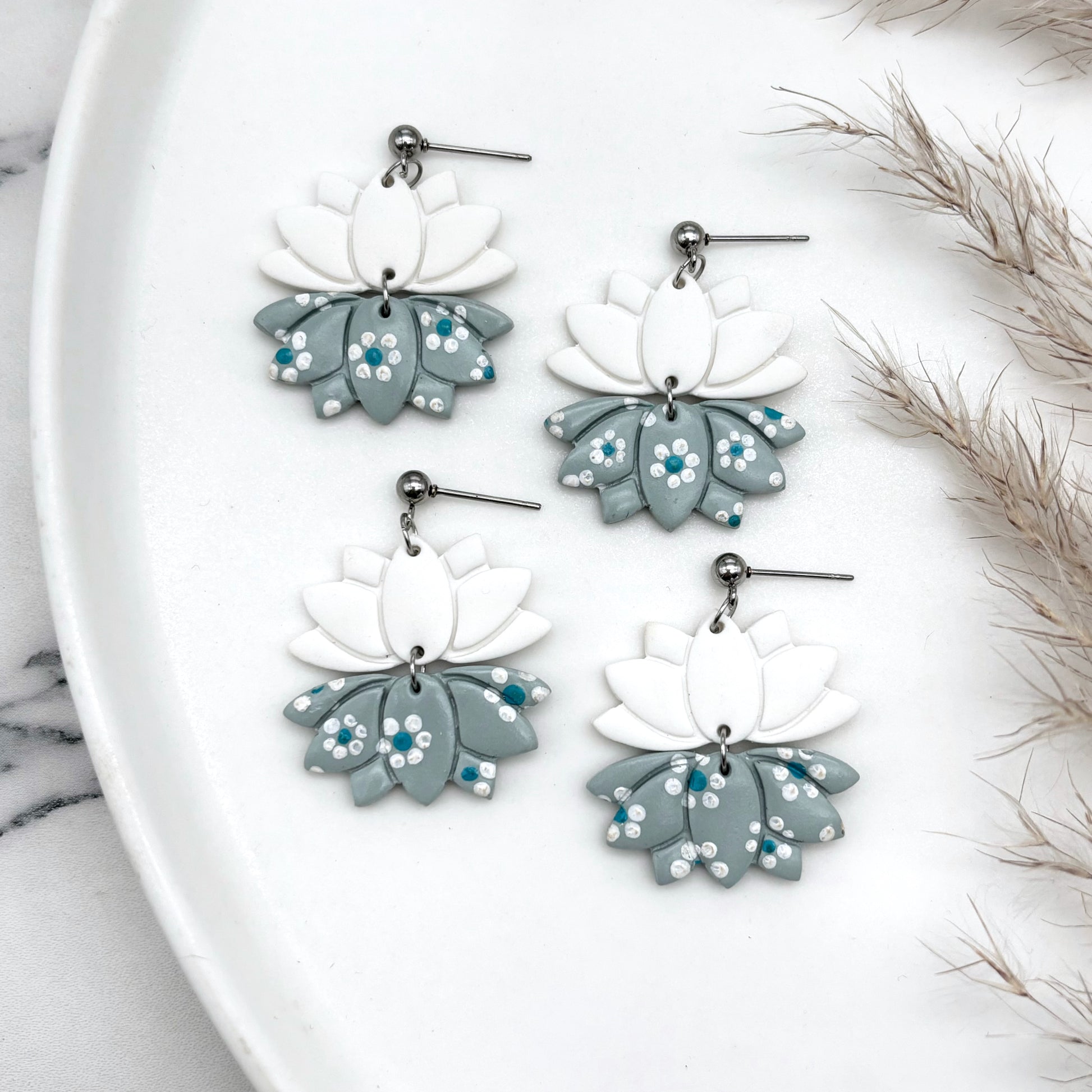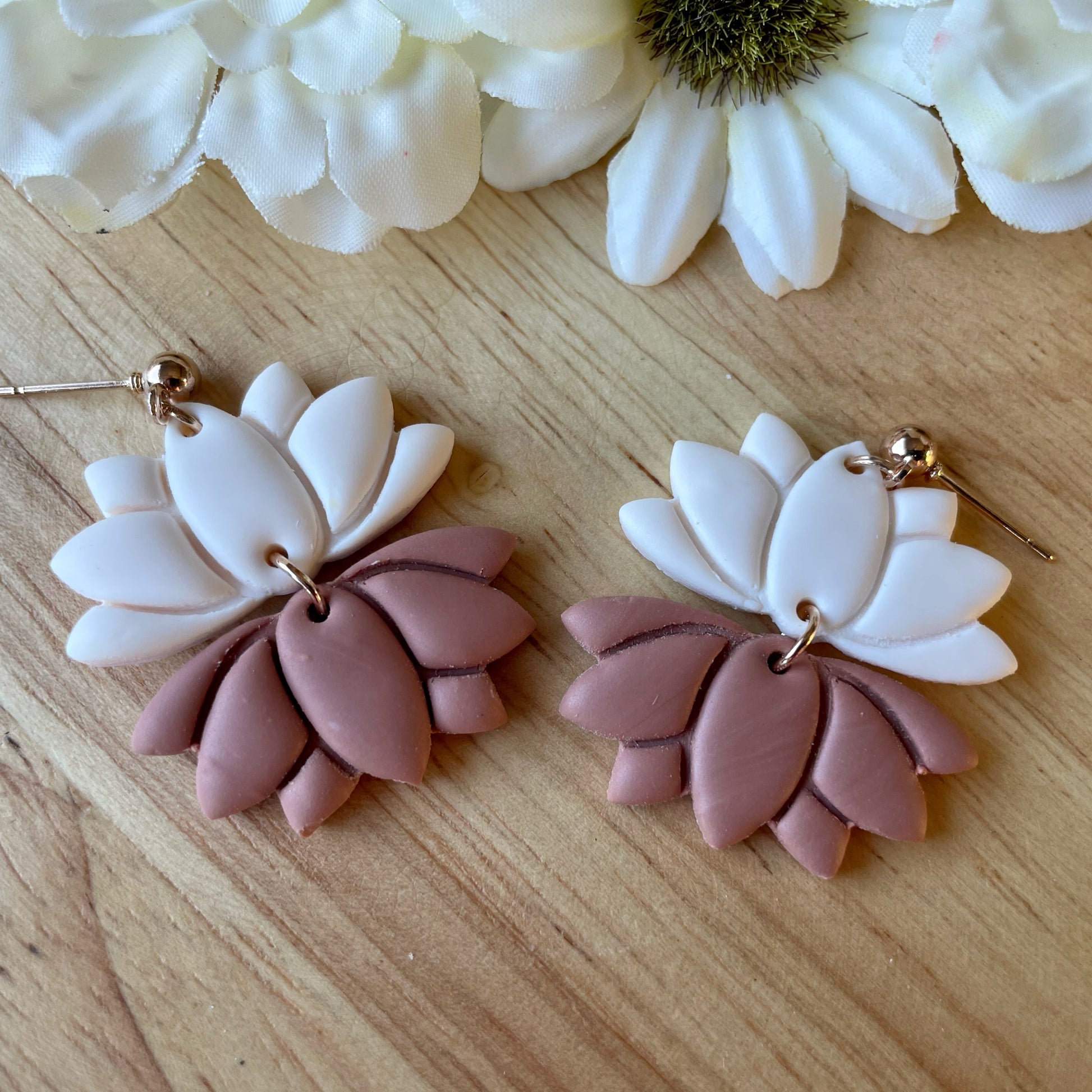 Statement flower polymer clay earrings with stainless steel ball studs